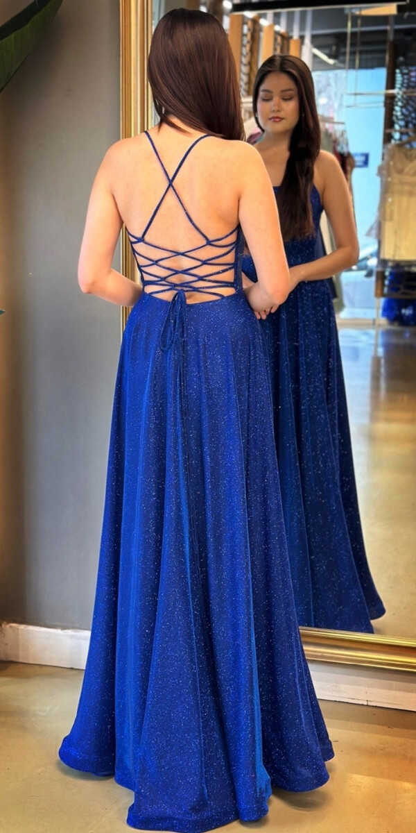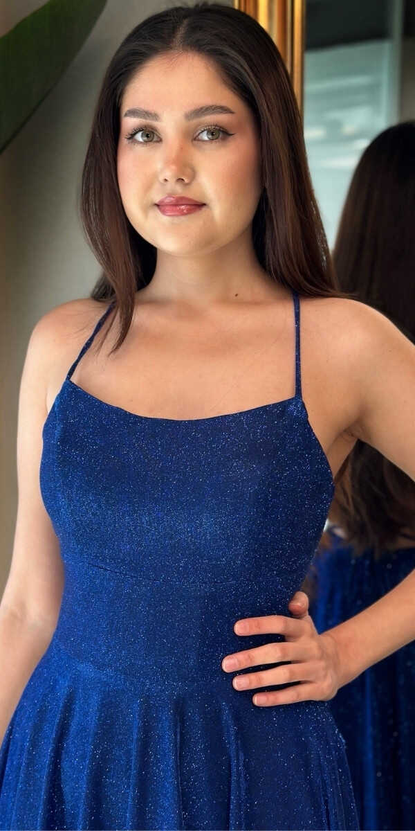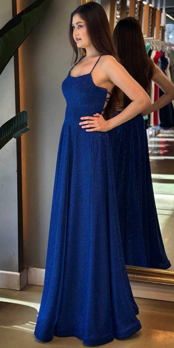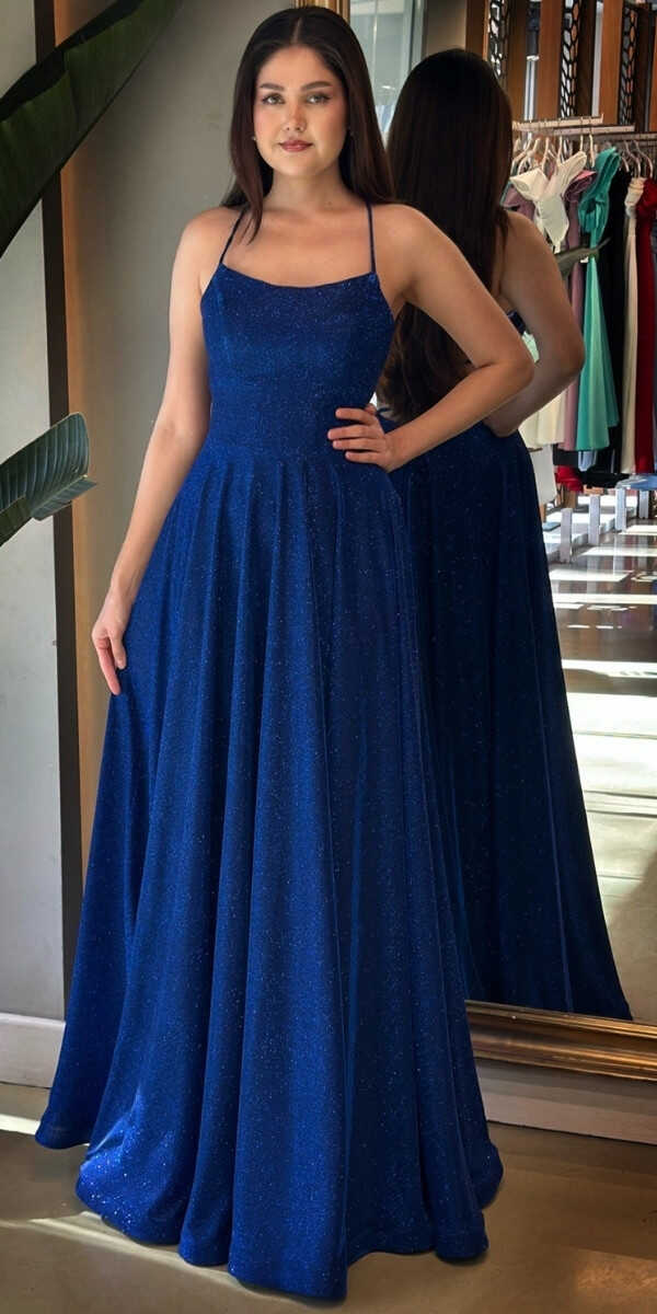 Saks Renk Kloş Etekli Uzun Abiye Elbise, Simli Kumaştan Üretilmiş Olup Simlerin Işıltısıyla Çok Hoş Gözükeceksiniz Elbisedeki İp Askılar Kullanım Kolaylığı Yaratacaktır. Şık Sırt Dekoltesi Size Çok Yakışacak.