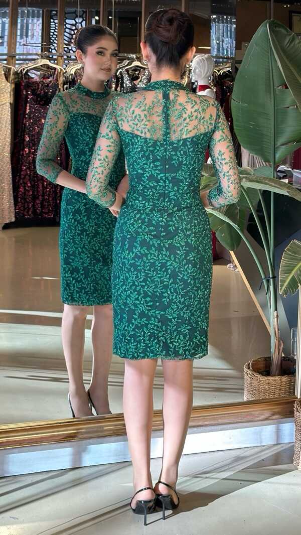 YEŞİL KISA ABİYE ELBİSE