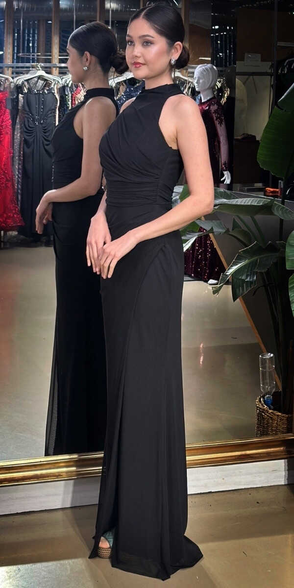 Gelince Haber VerHalter Yaka Siyah Renk Düz Kesim Uzun Abiye Elbise, Tül Kumaştan Üretilmiş olup Hafif Olmasından Kaynaklı Sizi Gece Boyu Rahat Hissettirecek. Vücuda uyum sağlayan likralı kumaş, dinamik bir duruş kazandırır. Yırtmaç Detayı Cesur ve Çarpıcı Bir Stil Sunacaktır.