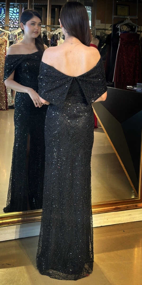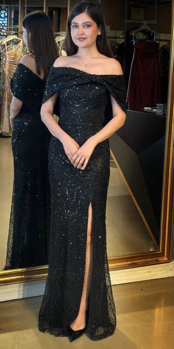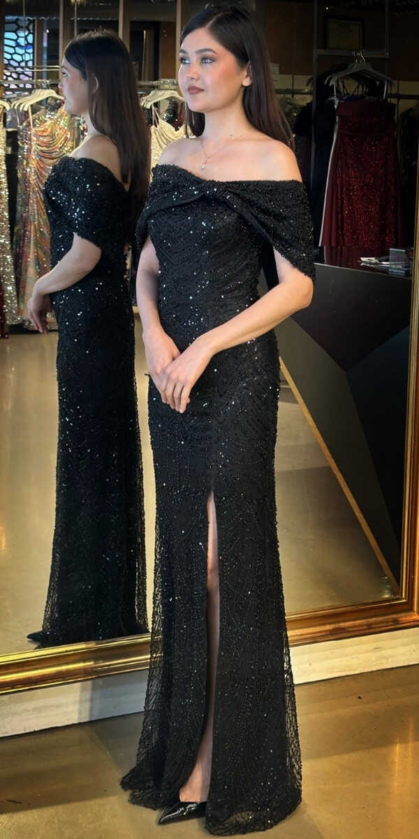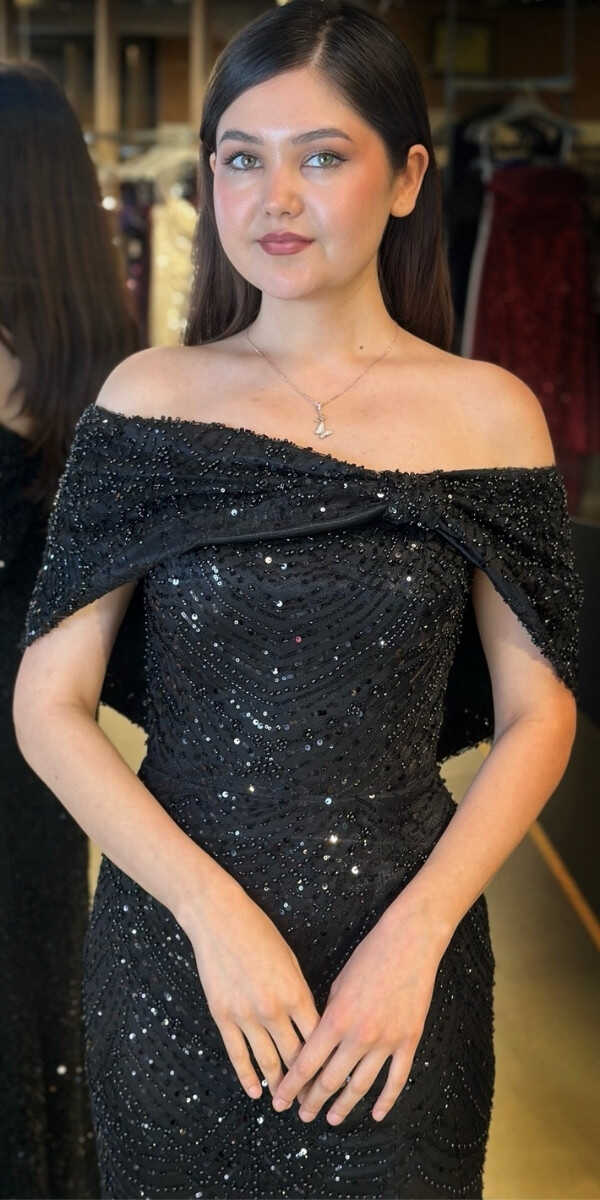 Siyah Renk Düz Kesim Uzun Abiye Elbise, Pullu Boncuklu Kumaştan Üretilmiş olup Parıltı ve Zarafetin Buluştuğu Kumaş Türü Sizi Işıl Işıl Gösterecektir. Yırtmaç Detayı Cesur ve Çarpıcı Bir Stil Sunacaktır.
