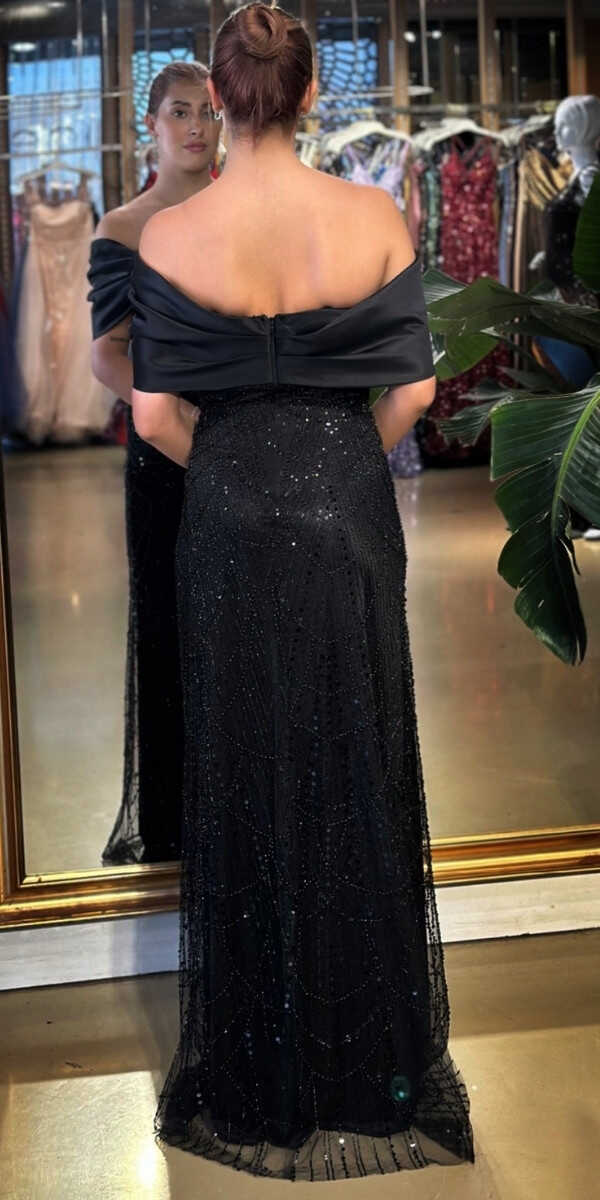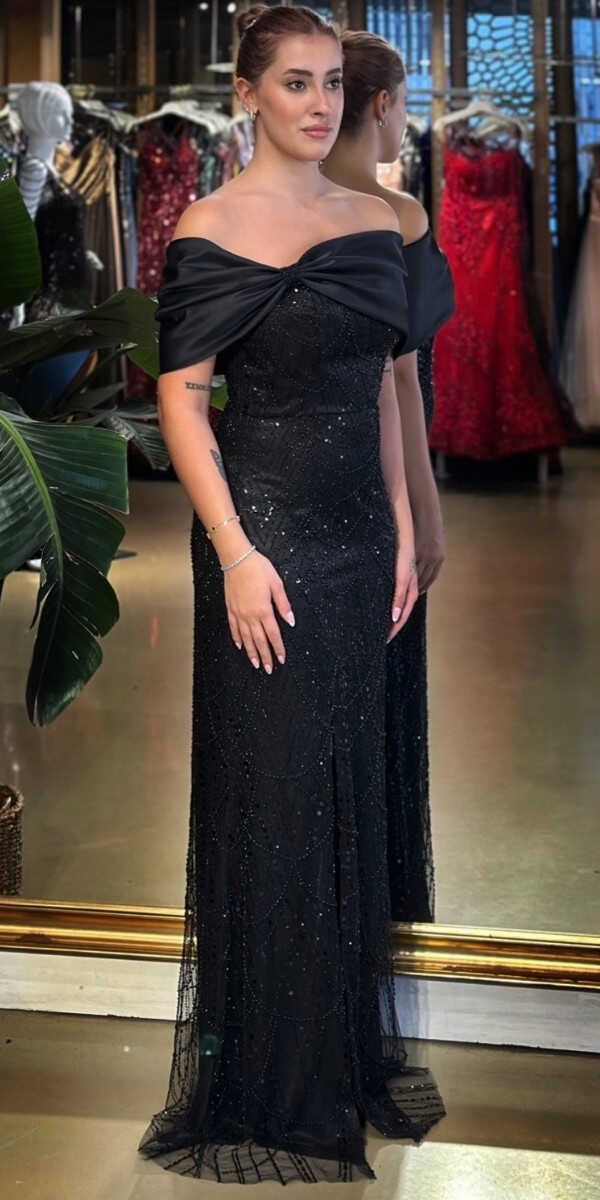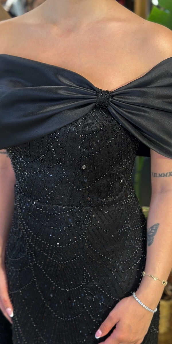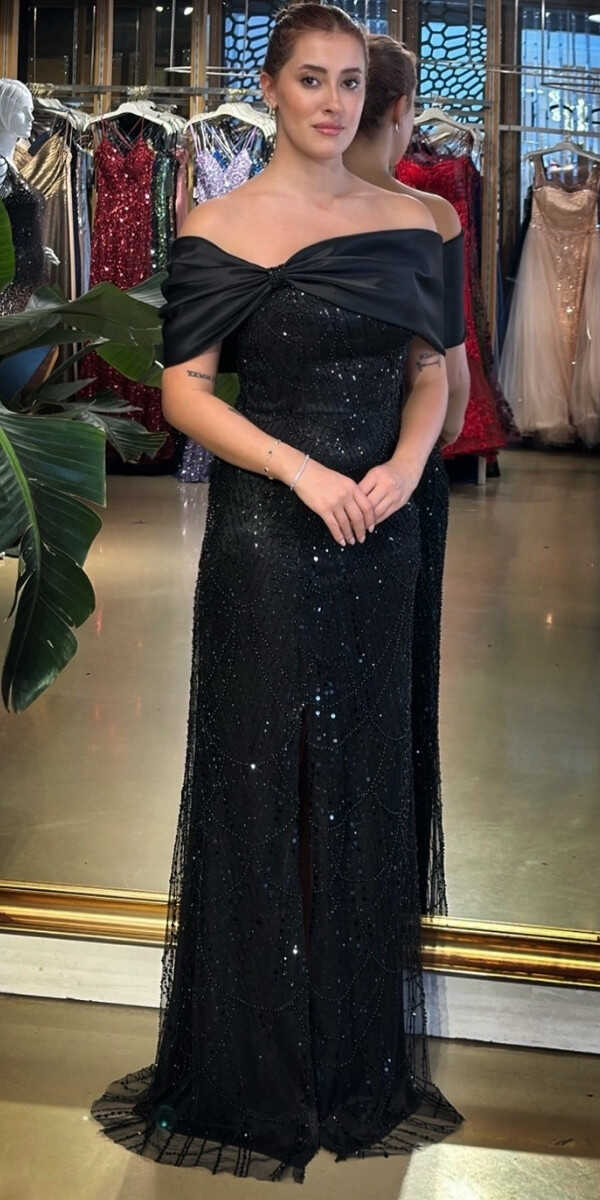 Madonna Yaka Siyah Renk Düz Kesim Uzun Abiye Elbise, Pullu Boncuklu Kumaştan Üretilmiş olup Parıltı ve Zarafetin Buluştuğu Kumaş Türü Sizi Işıl Işıl Gösterecektir. Yırtmaç Detayı Cesur ve Çarpıcı Bir Stil Sunacaktır.