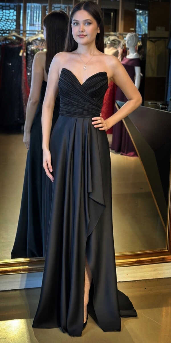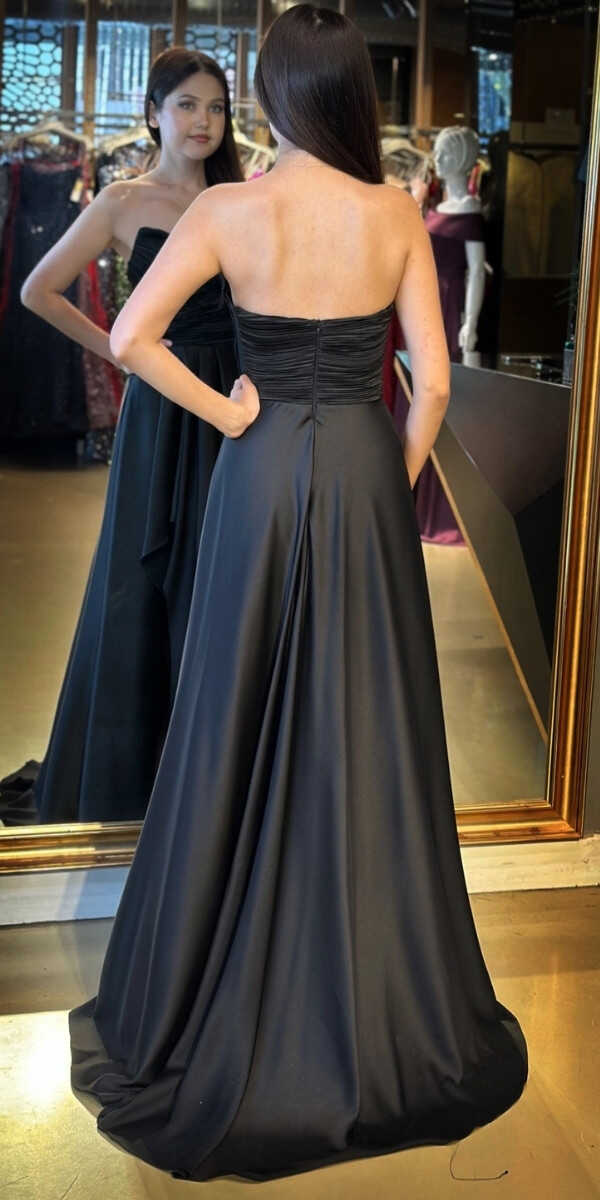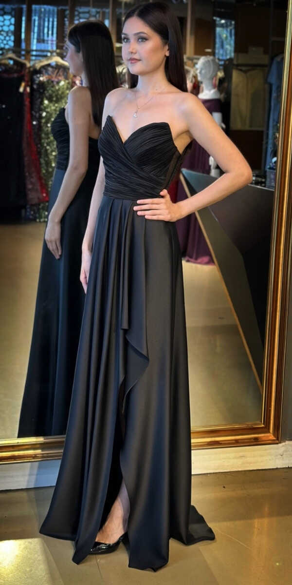 Siyah Renk Kloş Etekli Uzun Abiye Elbise, Saten Kumaştan Üretilmiş olup Satenin Pürüzsüz Işığı Görünümünüze Zarafet Katacaktır. Adeta Göz Kamaştıran Bir Görünüm Yaratacak.