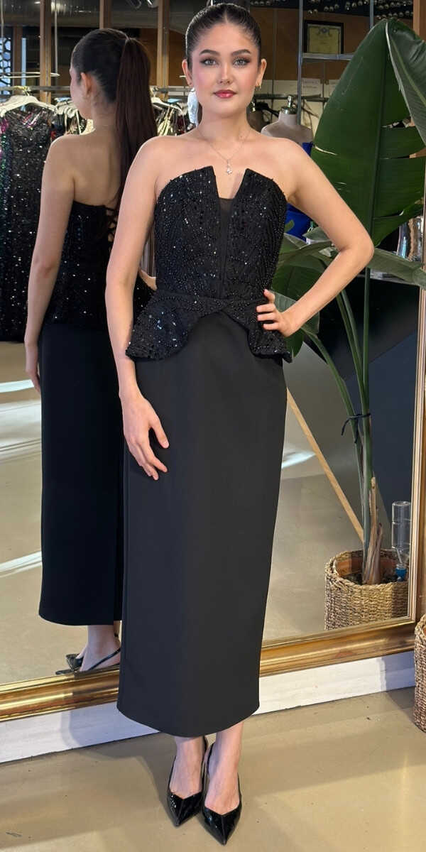 Gelince Haber VerStraplez Yaka Siyah Renk Düz Kesim Midi Abiye Elbise, Krep Kumaştan Üretilmiş olup Hafif Ve Daha Az Kırışan Krep Kumaş Sizi Daha Rahat Hissettirecektir. Vücuda uyum sağlayan likralı kumaş, dinamik bir duruş kazandırır. Şık Sırt Dekoltesi Size Çok Yakışacak. Yırtmaç Detayı Cesur ve Çarpıcı Bir Stil Sunacaktır.