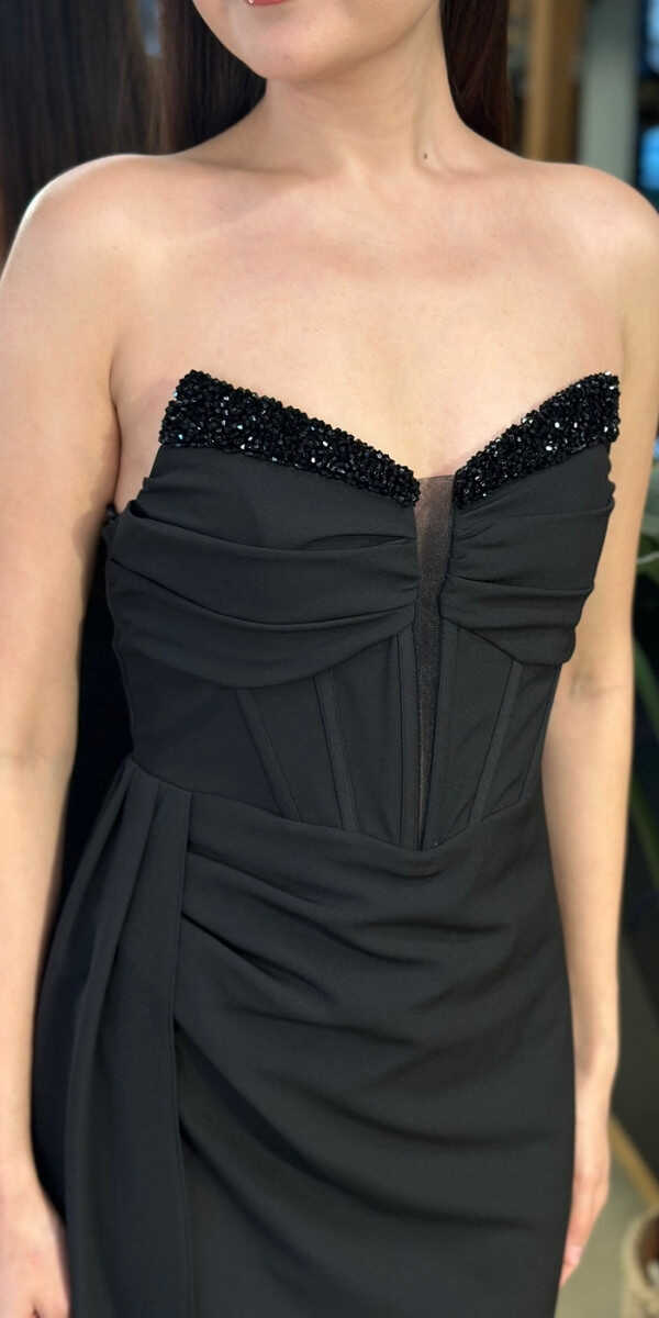 Gelince Haber VerStraplez Yaka Siyah Renk Düz Kesim Uzun Abiye Elbise, Krep Kumaştan Üretilmiş olup Hafif Ve Daha Az Kırışan Krep Kumaş Sizi Daha Rahat Hissettirecektir. Taşlı Aksesuar Dikkatleri Üzerinizde Toplayacak. Zarif göğüs dekoltesiyle dengeli bir çekicilik oluşturur. Adeta Göz Kamaştıran Bir Görünüm Yaratacak.