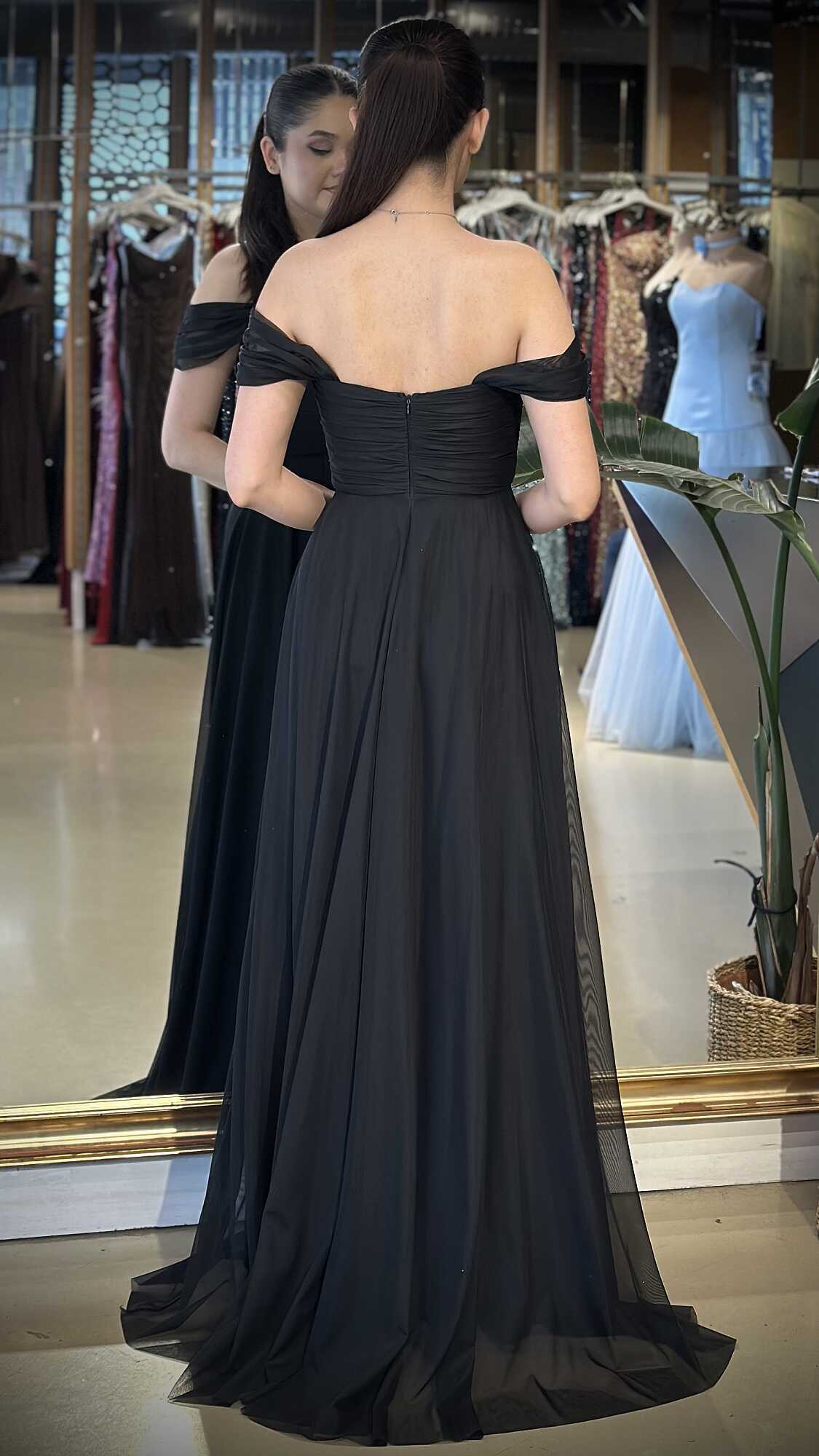 Siyah İp Askılı Uzun Abiye Elbise 7744