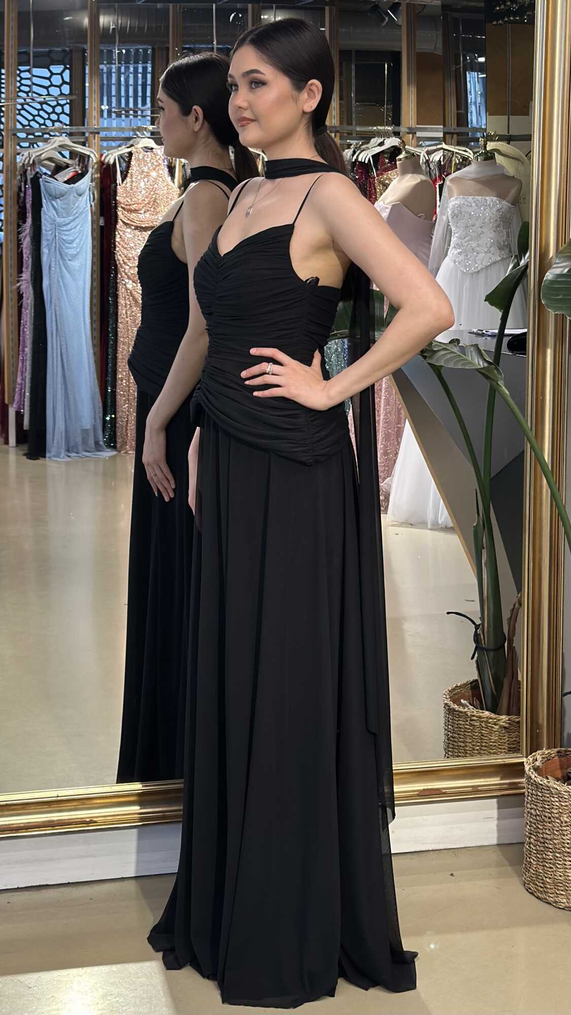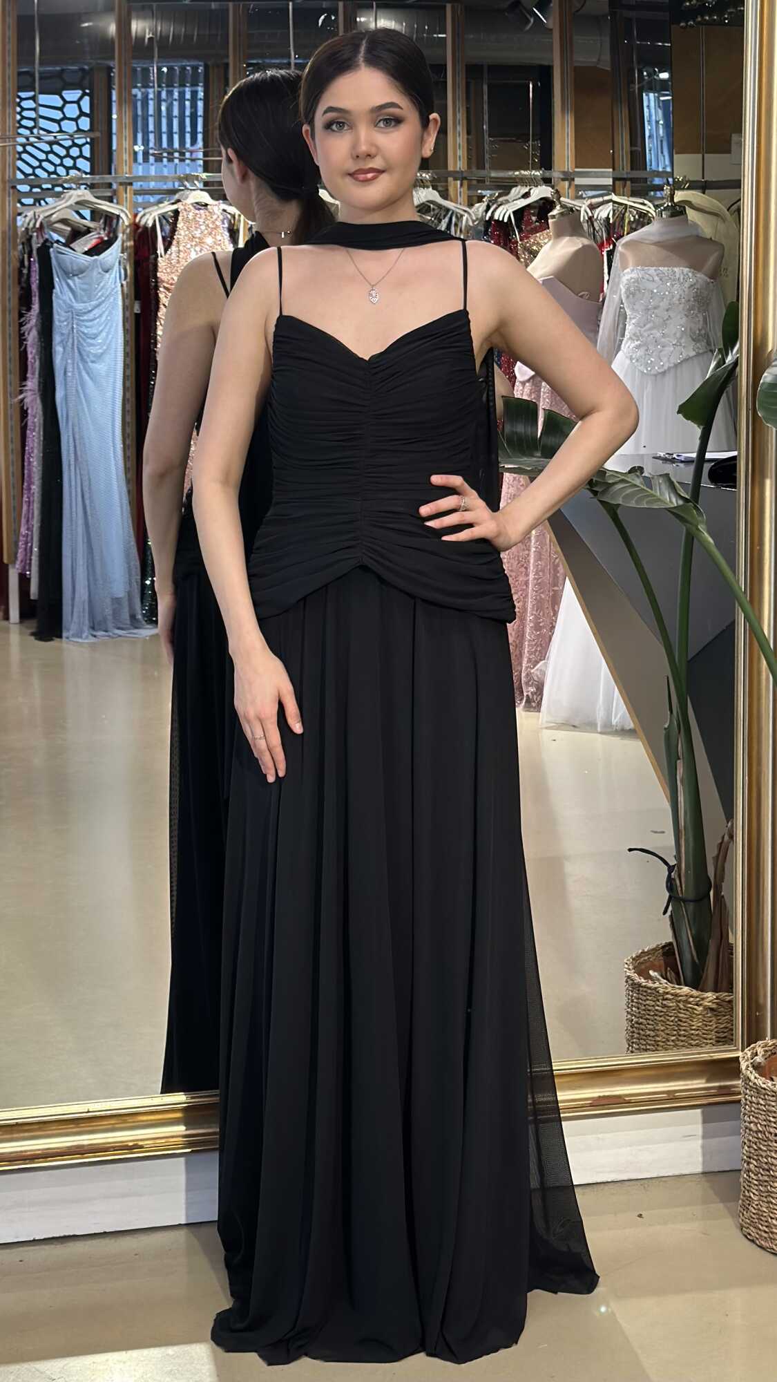 Gelince Haber VerV Yaka Siyah Renk Kloş Etekli Uzun Abiye Elbise, Tül Kumaştan Üretilmiş olup Hafif Olmasından Kaynaklı Sizi Gece Boyu Rahat Hissettirecek. Elbisedeki İp Askılar Kullanım Kolaylığı Yaratacaktır. Çıkarılabilir peleriniyle iki farklı kullanım imkânı sunar.