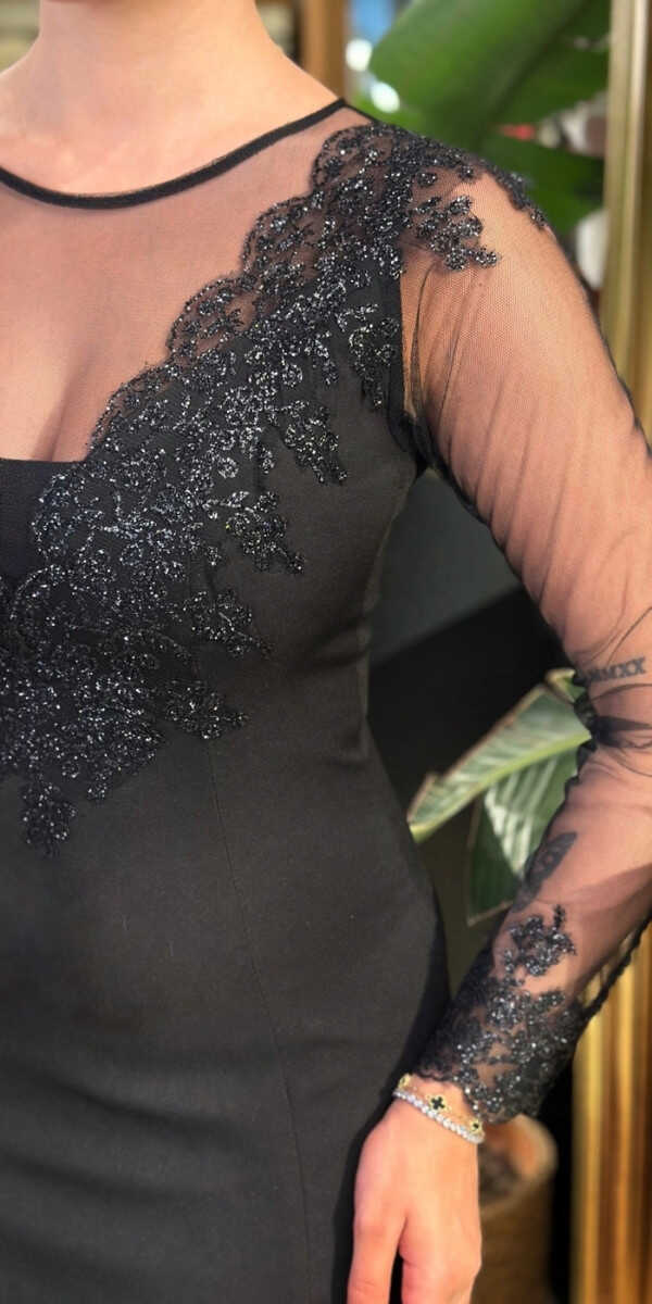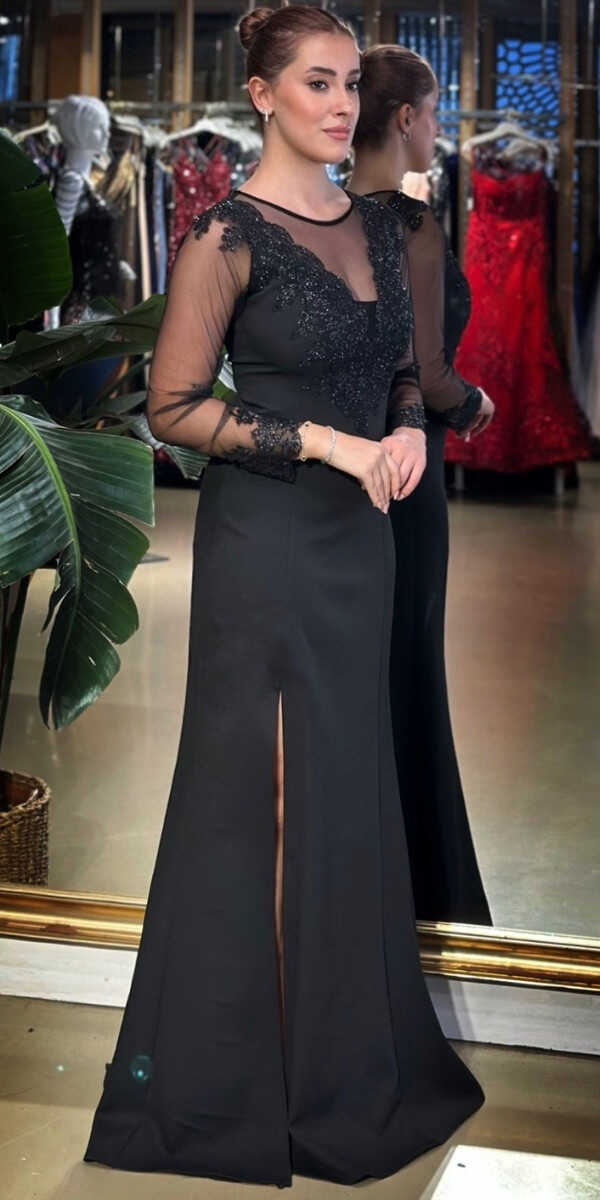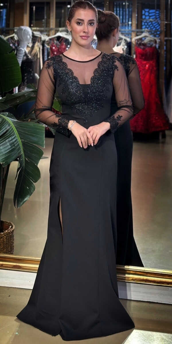 Yuvarlak Yaka Siyah Renk Düz Kesim Uzun Abiye Elbise, Krep Kumaştan Üretilmiş olup Hafif Ve Daha Az Kırışan Krep Kumaş Sizi Daha Rahat Hissettirecektir. Vücuda uyum sağlayan likralı kumaş, dinamik bir duruş kazandırır. Uzun kollarıyla, kollarınızı zarif bir şekilde kapatır. Yırtmaç Detayı Cesur ve Çarpıcı Bir Stil Sunacaktır.