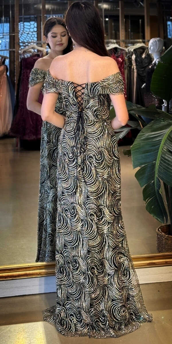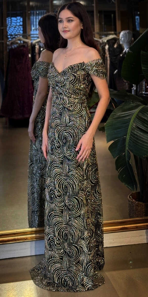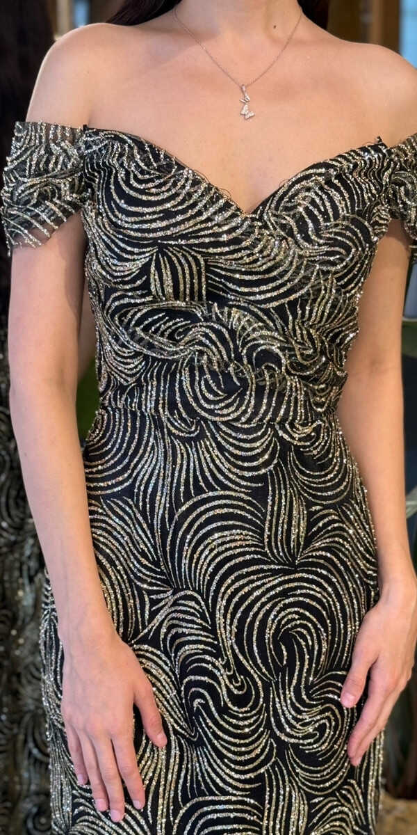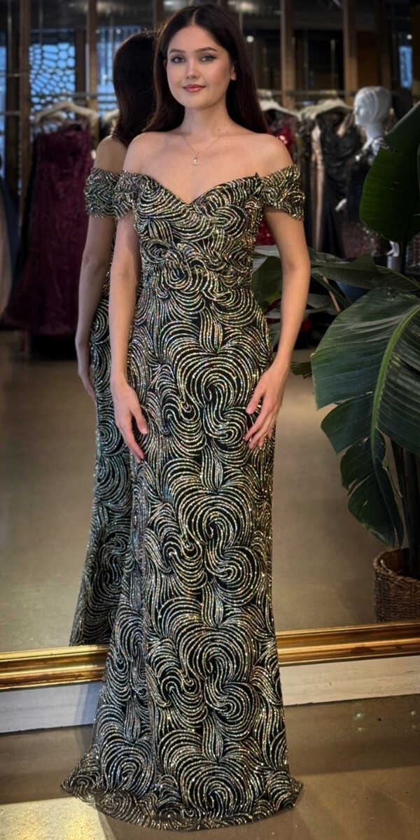 Madonna Yaka Siyah&Gold Renk Düz Kesim Uzun Abiye Elbise, Simli Kumaştan Üretilmiş olup Simlerin Işıltısıyla Çok Hoş Gözükeceksiniz. Şık Sırt Dekoltesi Size Çok Yakışacak.
