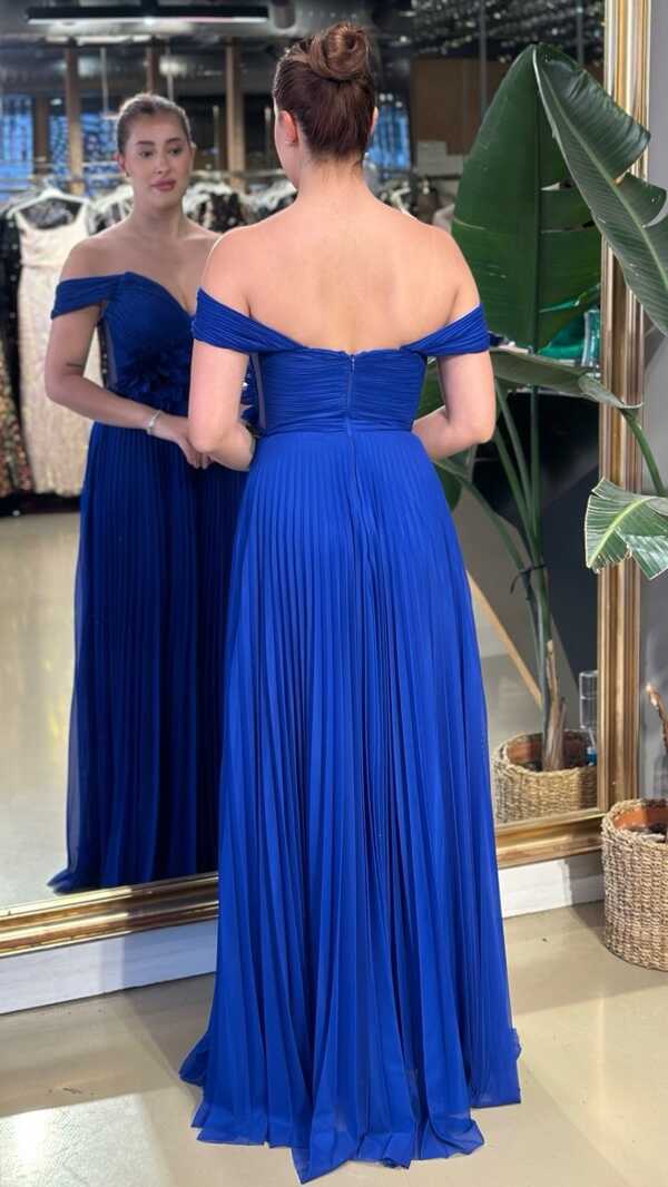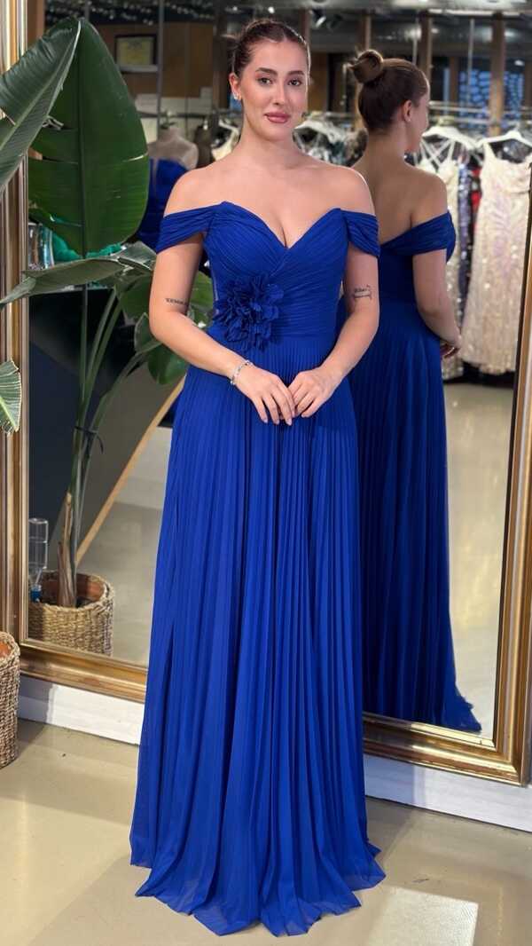 Saks Yırtmaçlı Düz Kesim Krep Uzun Abiye Elbise 7524