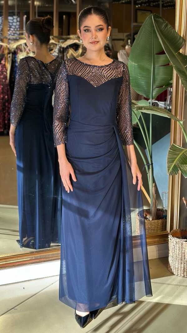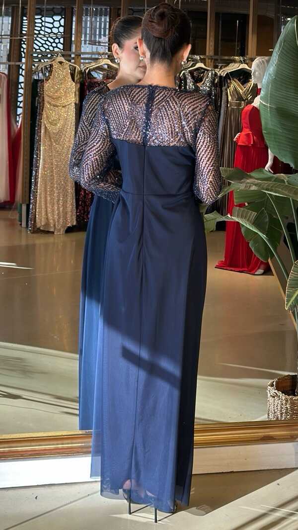 LACİVERT UZUN ABİYE ELBİSE