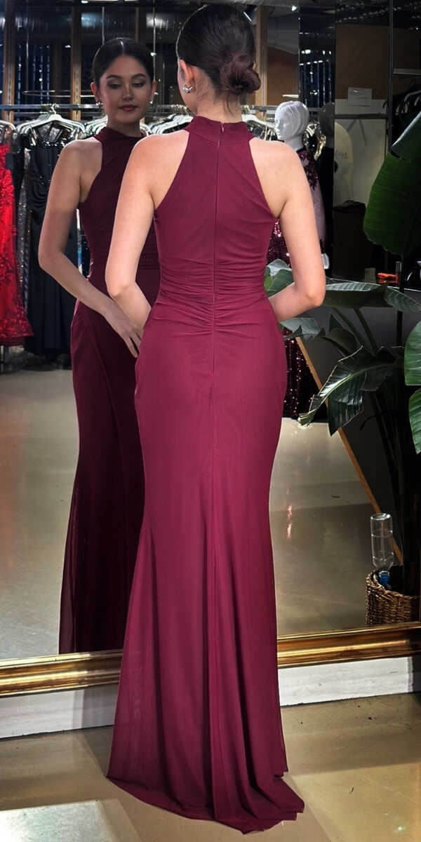 Gelince Haber VerHalter Yaka Vişne Renk Renk Düz Kesim Uzun Abiye Elbise, Tül Kumaştan Üretilmiş olup Hafif Olmasından Kaynaklı Sizi Gece Boyu Rahat Hissettirecek. Vücuda uyum sağlayan likralı kumaş, dinamik bir duruş kazandırır. Yırtmaç Detayı Cesur ve Çarpıcı Bir Stil Sunacaktır.