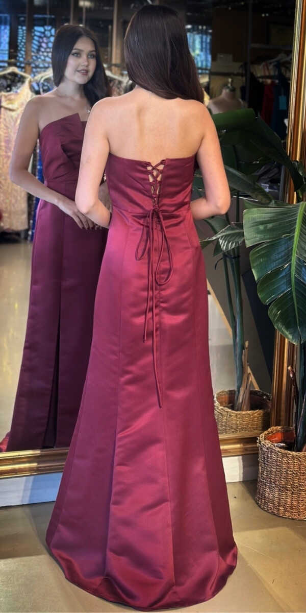 Gelince Haber VerStraplez Yaka Vişne Renk Renk Düz Kesim Uzun Abiye Elbise, Saten Kumaştan Üretilmiş olup Satenin Pürüzsüz Işığı Görünümünüze Zarafet Katacaktır. Şık Sırt Dekoltesi Size Çok Yakışacak. Yırtmaç Detayı Cesur ve Çarpıcı Bir Stil Sunacaktır.