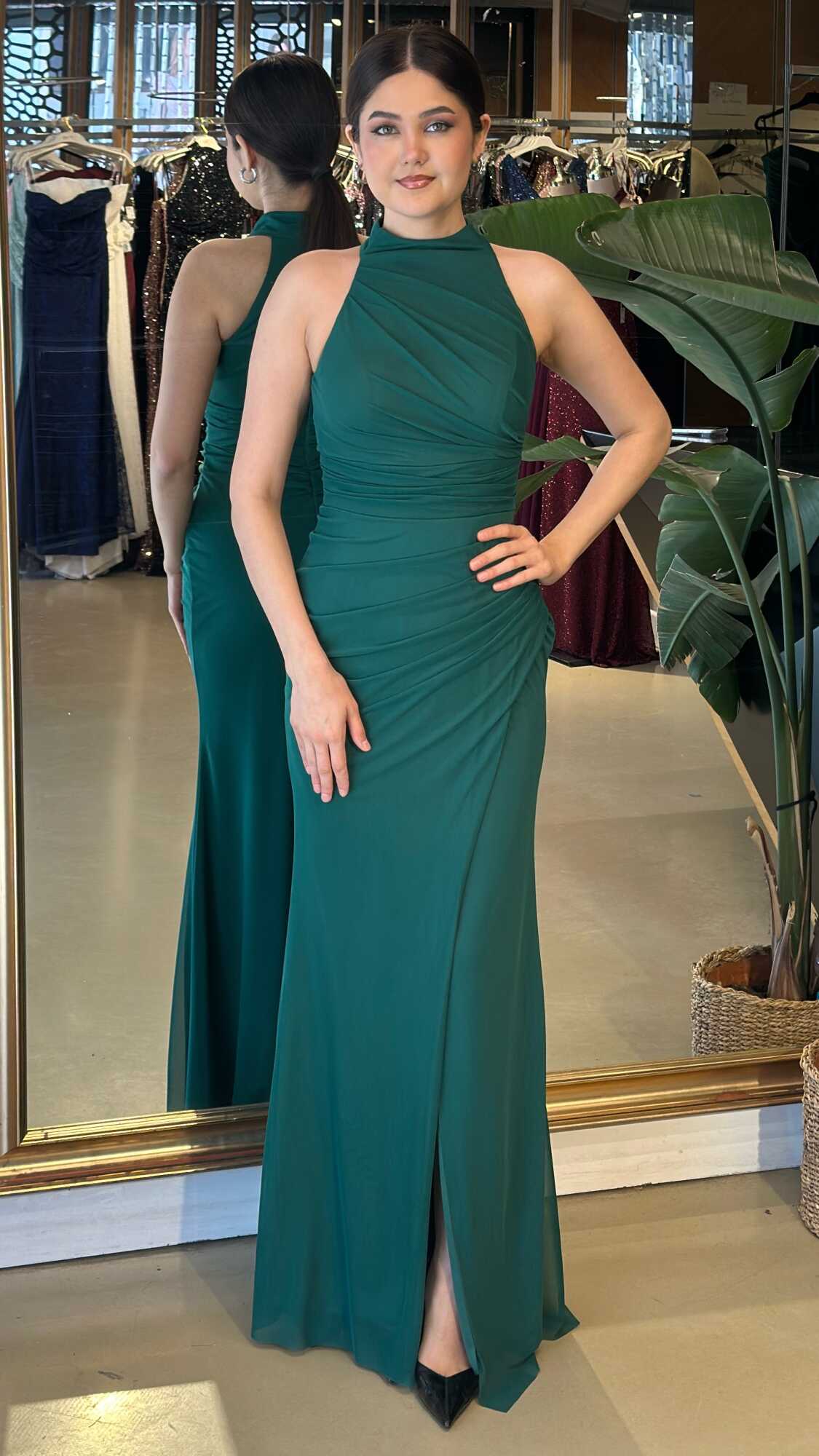 Gelince Haber VerHalter Yaka Yeşil Renk Düz Kesim Uzun Abiye Elbise, Tül Kumaştan Üretilmiş olup Hafif Olmasından Kaynaklı Sizi Gece Boyu Rahat Hissettirecek. Vücuda uyum sağlayan likralı kumaş, dinamik bir duruş kazandırır. Yırtmaç Detayı Cesur ve Çarpıcı Bir Stil Sunacaktır.
