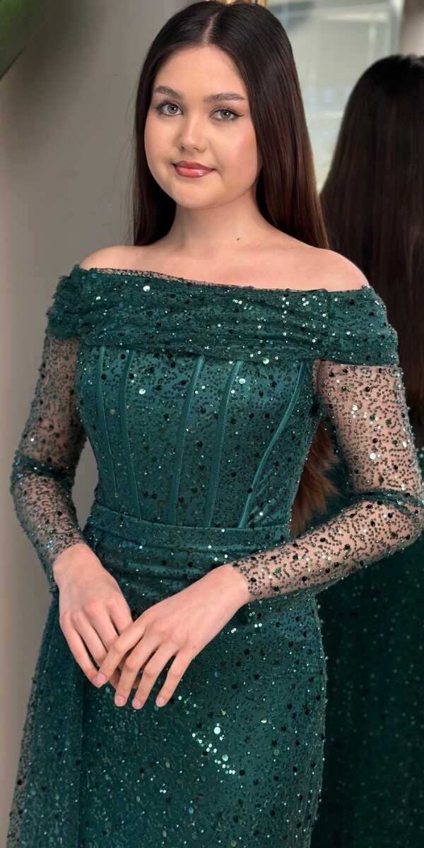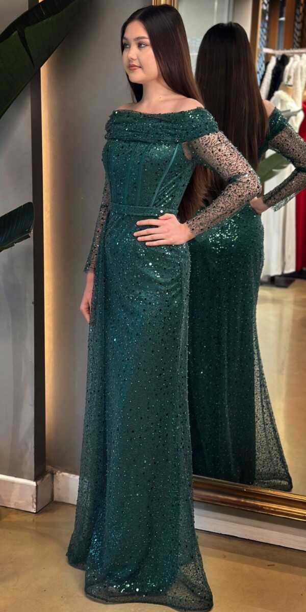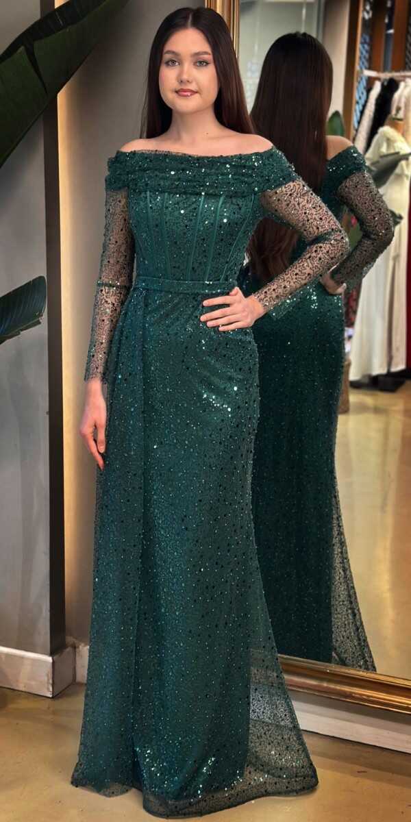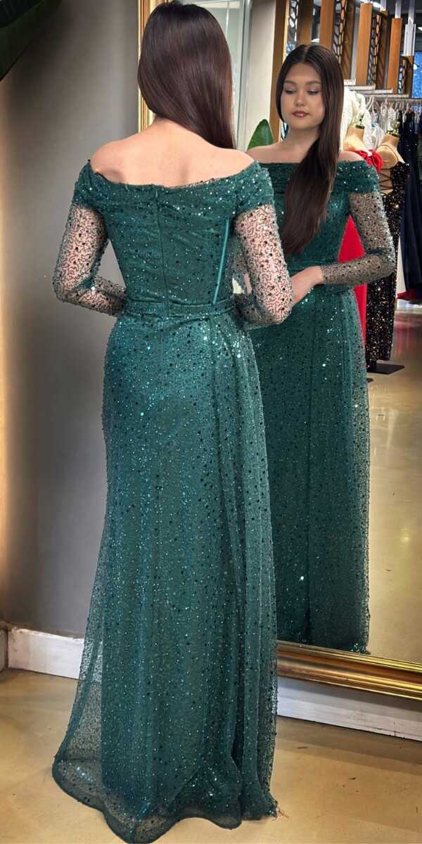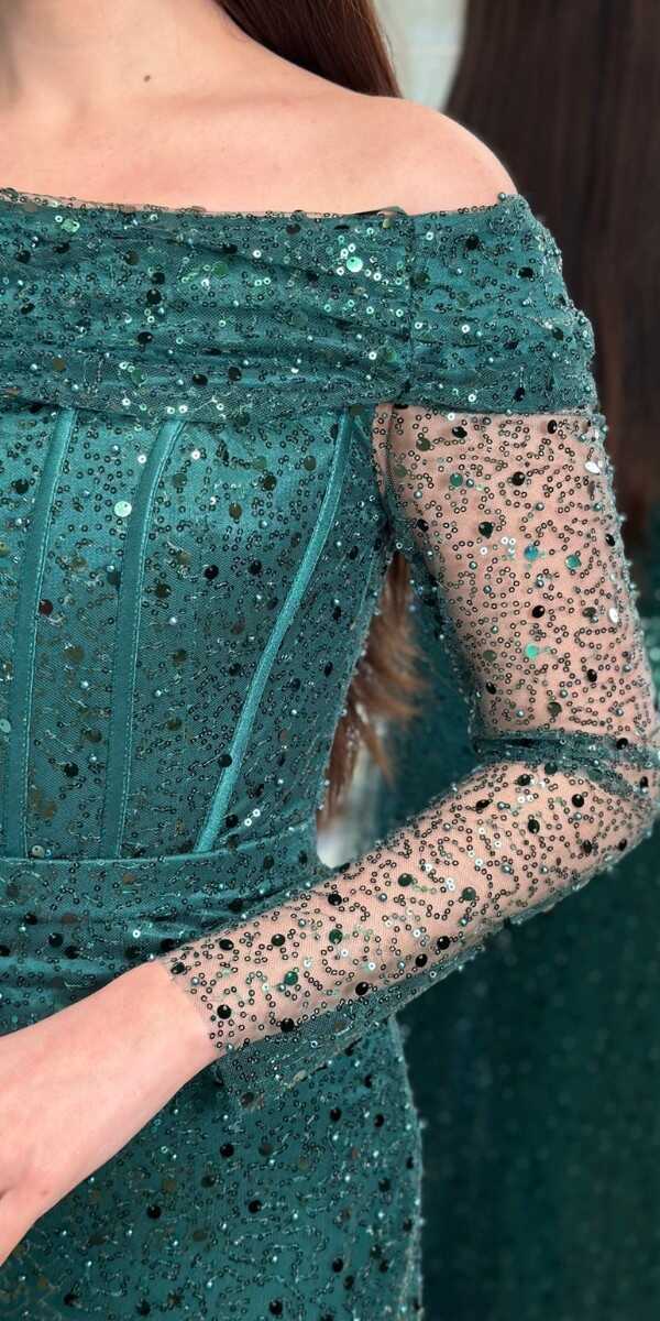 Yeşil Renk Düz Kesim Uzun Abiye Elbise, Pullu Boncuklu Kumaştan Üretilmiş Olup Parıltı ve Zarafetin Buluştuğu Kumaş Türü Sizi Işıl Işıl Gösterecektir.
