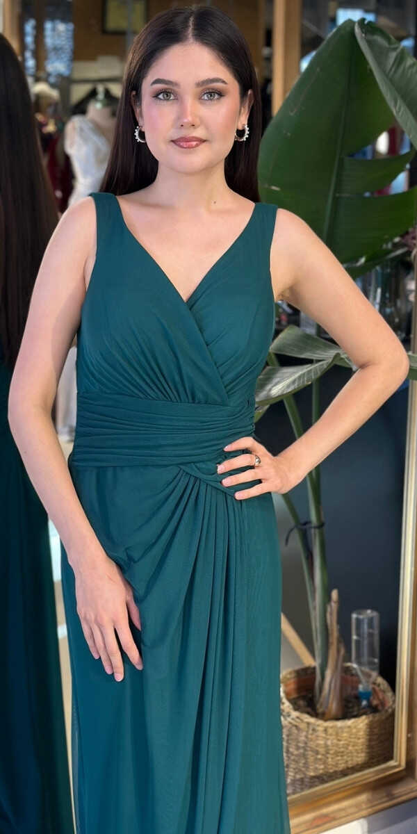 Gelince Haber VerV Yaka Yeşil Renk Düz Kesim Uzun Abiye Elbise, Tül Kumaştan Üretilmiş olup Hafif Olmasından Kaynaklı Sizi Gece Boyu Rahat Hissettirecek. Vücuda uyum sağlayan likralı kumaş, dinamik bir duruş kazandırır. Kalın askılı yapısıyla destekleyici ve modern bir görünüm sağlar. Adeta Göz Kamaştıran Bir Görünüm Yaratacak.